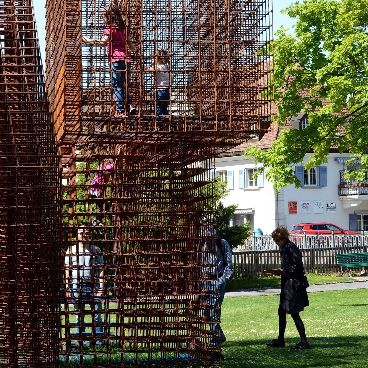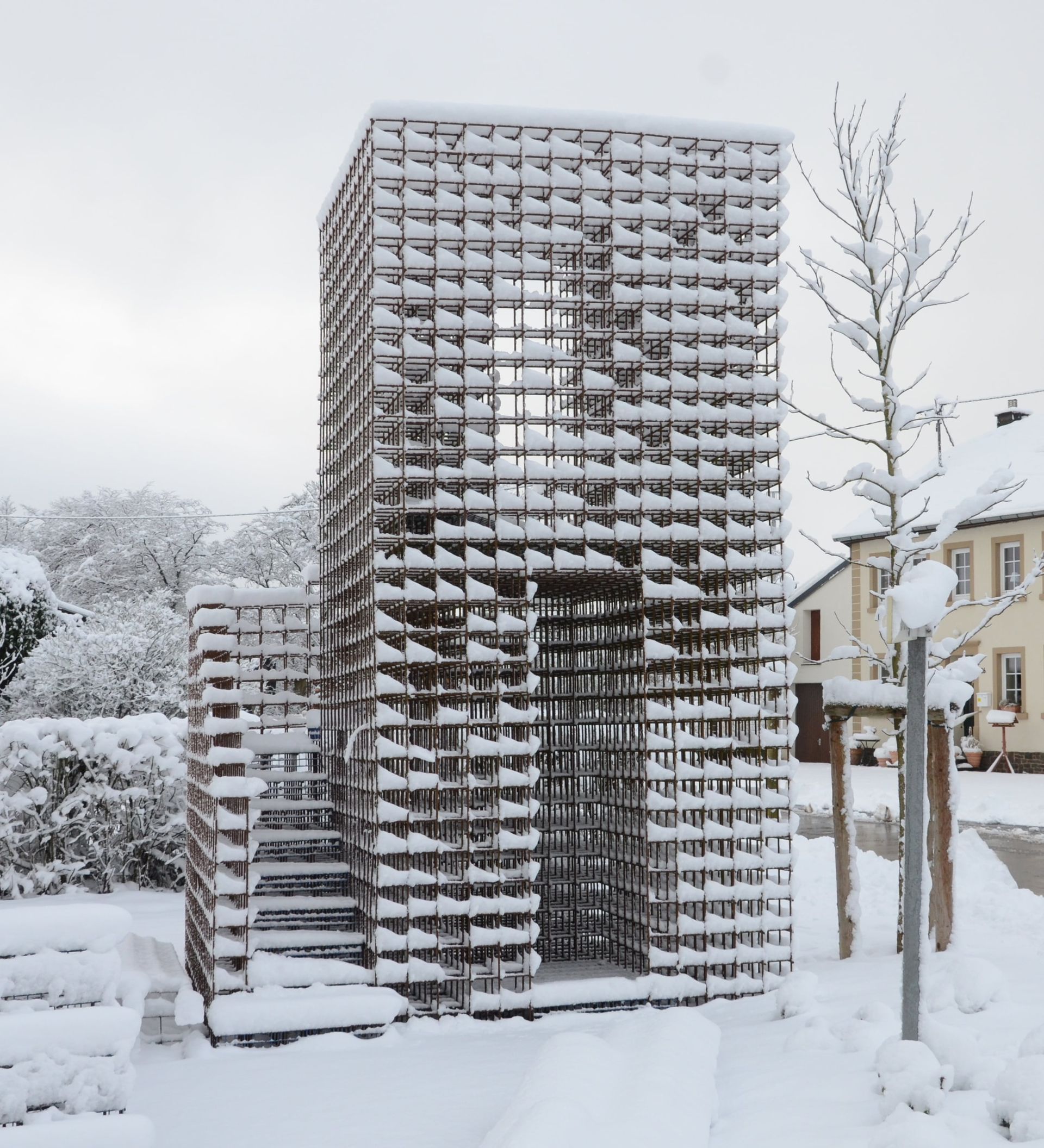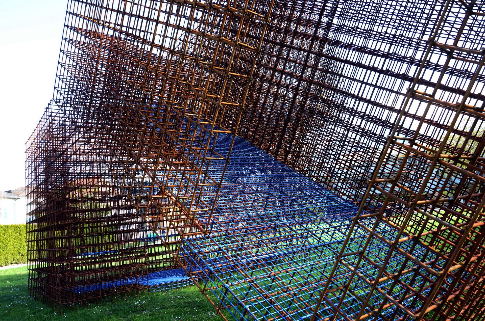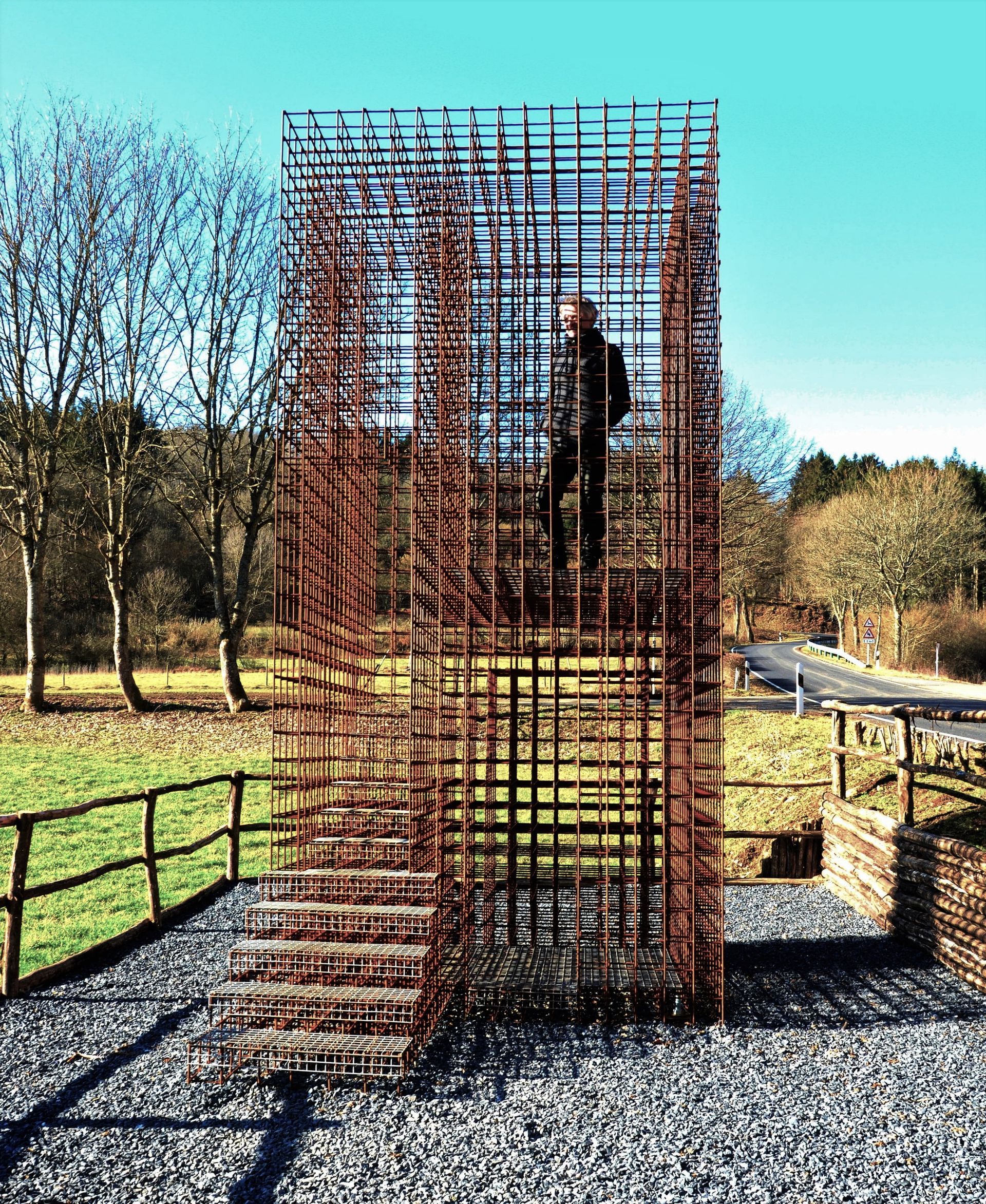 Ich baue Großskulpturen, in die die Betrachtenden eintreten können. Die Räume, Flure und Treppen innerhalb der Skulptur fordern die Wahrnehmung heraus, weil die unendlich übereinander geschichteten Drähte je nach Perspektive massive Dichte oder instabile Transparenz suggerieren. Das Begehen der Skulptur und ihrer unterschiedlichen Ebenen lässt die Betrachtenden „Skulptur“ neu empfinden. Das gewohnte, traditionelle Raumerlebnis wird in der Skulptur relativiert und zu einer völlig neuen Raumwahrnehmung.