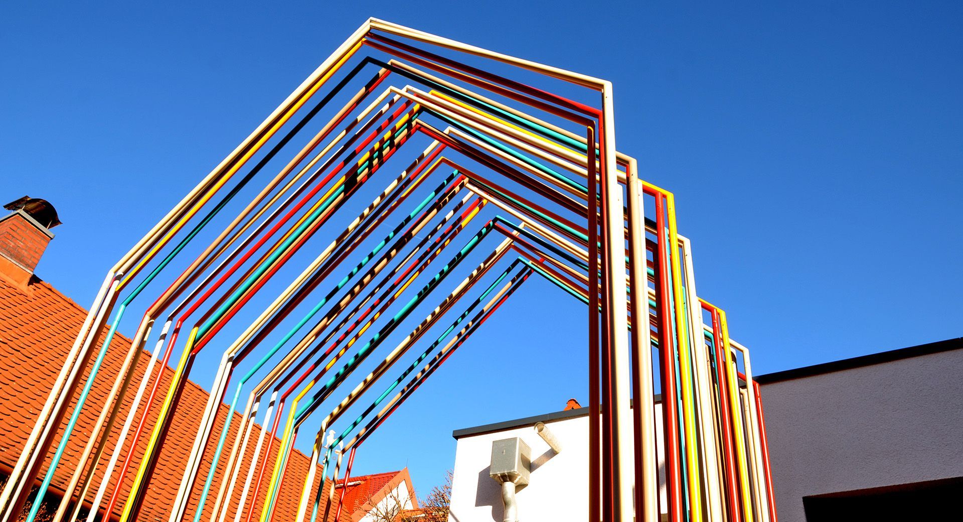 Bei meinen Skulpturen kommt ausschließlich ein für die Industrie konzipiertes Material zum Einsatz, das üblicherweise in industriellen oder handwerklichen Zusammenhängen verwandt wird. Ich stelle es in einen künstlerischen Zusammenhang, dabei entsteht natürlich kein funktionaler Gegenstand, sondern ein Kunstwerk.