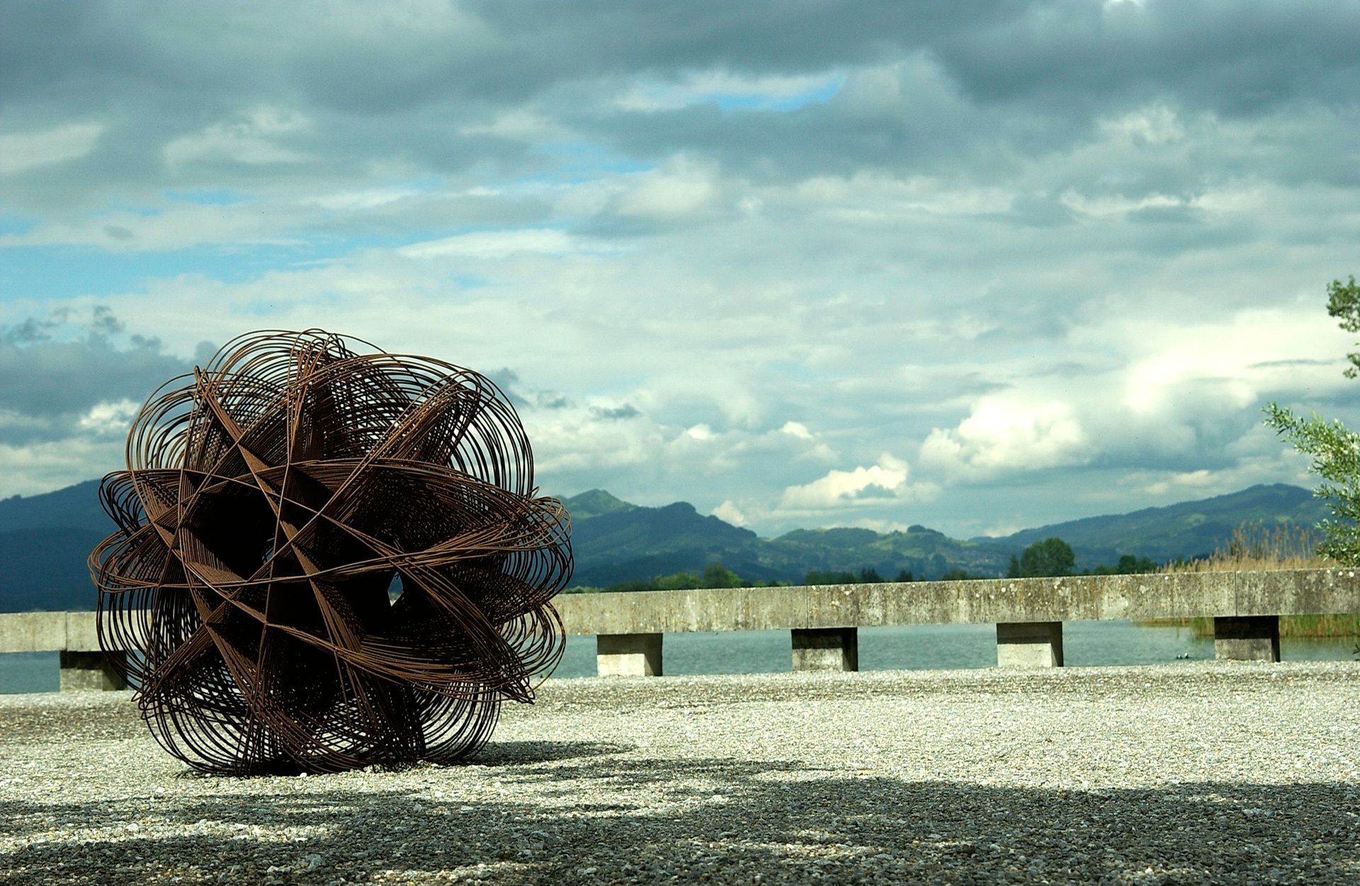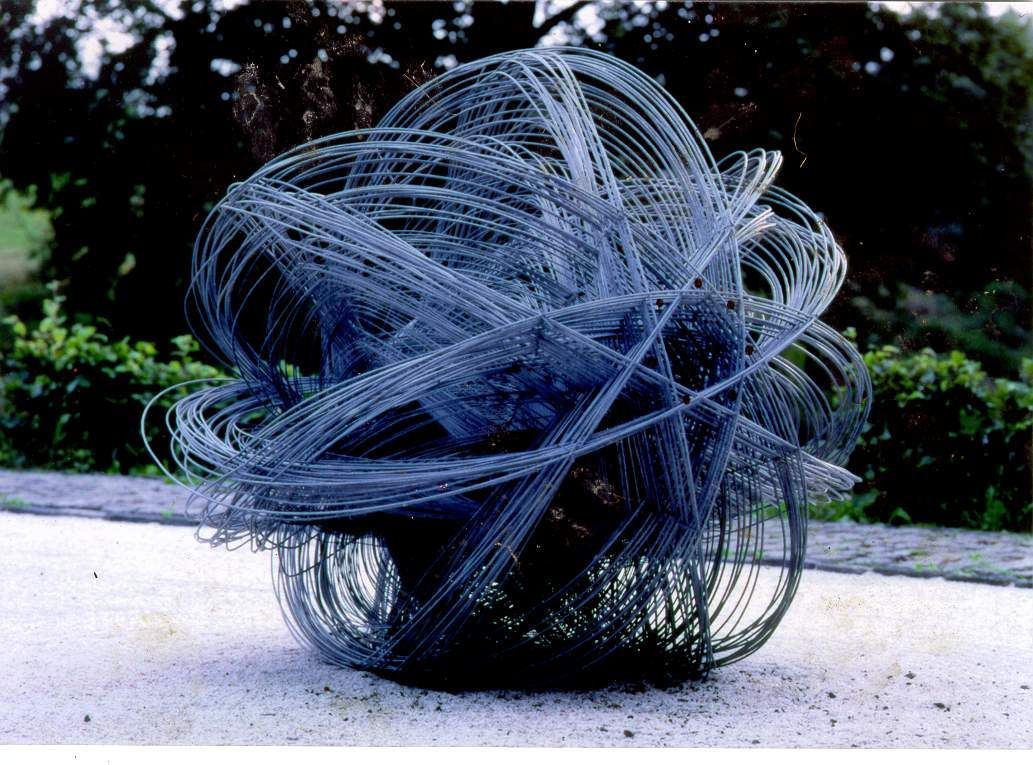 Die Skulpturenreihe "Zen" besteht aus gewickeltem Draht. Die an sich schlichte, einfache Linie ergibt durch ihr scheinbar unendliches Fortlaufen eine geometrische Form. Inspiriert vom Zen-Buddhismus möchte ich die Erhabenheit des Einfachen, nicht dramatisch Inszenierten und die darin liegende Ruhe erfahrbar machen.